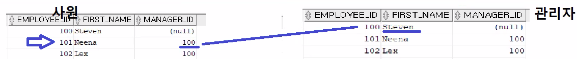 사원입장에서의 manager_id = 관리자 입장에서의 employee_id