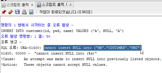 INSERT INTO customer(id, pwd, name) VALUES('A', NULL, 'A');