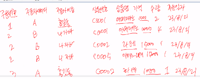 **테이블 : ORDER_INFO (ORDER BY 있어서 테이블 이름 ORDER 불가능)