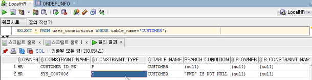 SELECT * FROM user_constraints WHERE table_name = 'CUSTOMER';