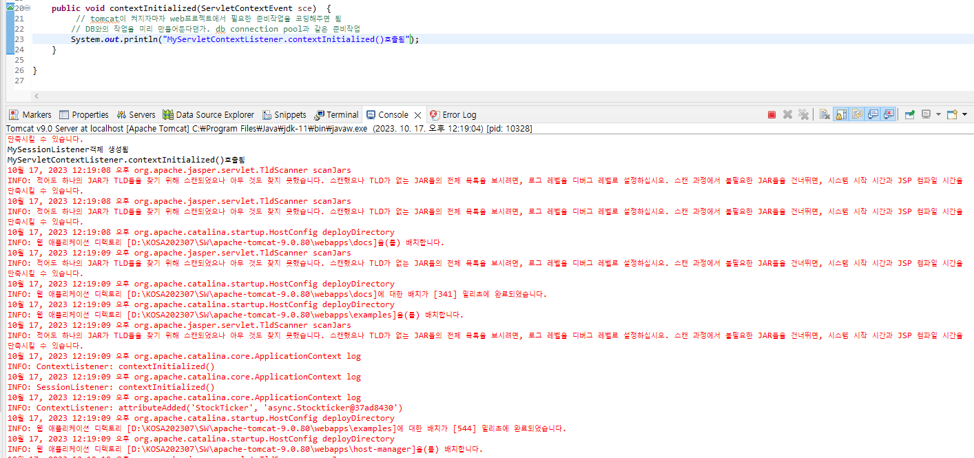 System.out.println("MyServletContextListener.contextInitialized()호출됨");