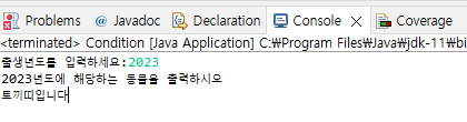 System.out.println(year + "년도에 해당하는 동물을 출력하시오");