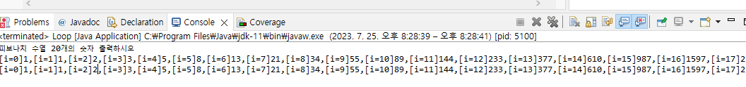 System.out.println("피보나치 수열 20개의 숫자 출력하시오");