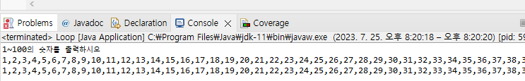 System.out.println("1~100의 홀수합, 짝수합 계산하여 출력하시오");
