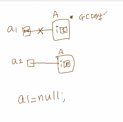 ※ null값 넣으면 연결고리 끊어짐, 그 즉시 쓰레기 수집되는건 아님. 일단 쓰레기봉투에 넣고 jvm이 시간날 때 수집해감.