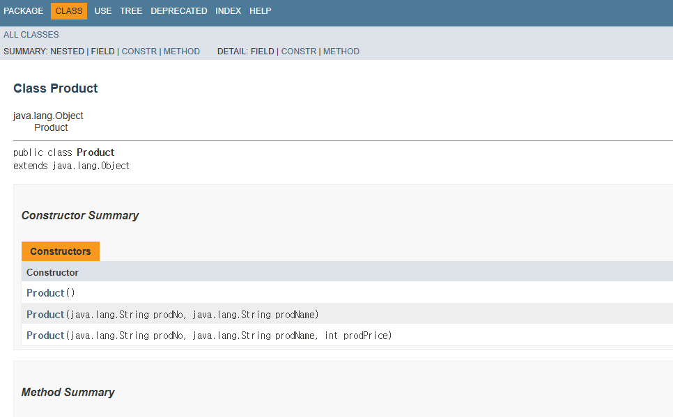 private로 바꿔서 사용설명서의 field summary 사라졌음