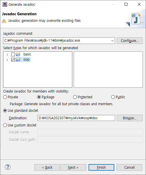 Private : private부터 default, package... 문서에 노출