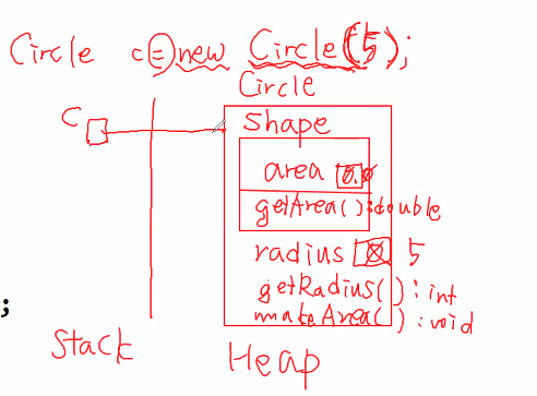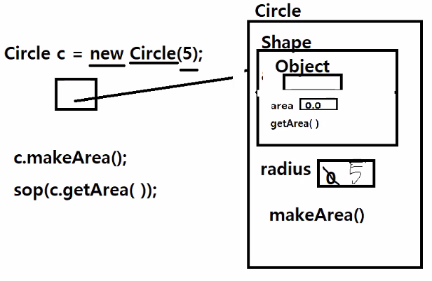 c2 = new Circle(5); // 부모의 부모인 object로부터 상속 받을 수 있다. 상속의 깊이가 깊을 수록 변수가 재선언될 수 있다.