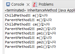 System.out.println("ChildMethod의 cm()입니다"); // 부모와 다른 메서드 이름