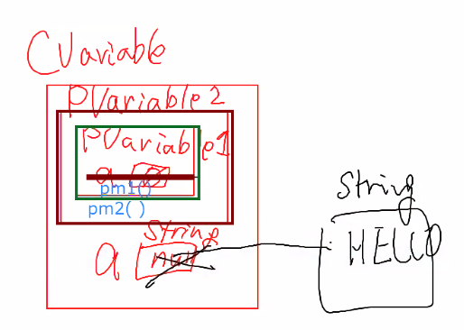 cv.cm(); // 자기 객체/method의 a변수, ChildVariable의 a=HELLO