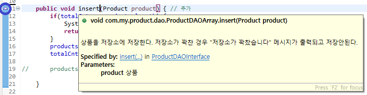 ProductDAOArray에 작성되어 있던 문서용 주석 ProductDAOInterface로 옮긴 후,