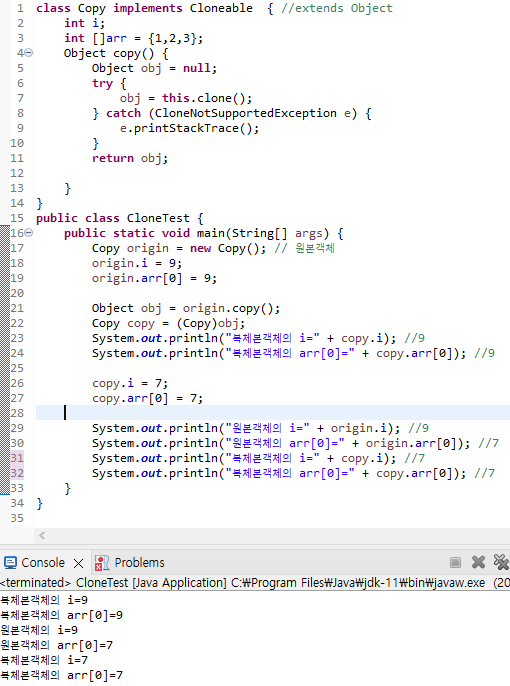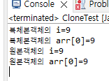 System.out.println("복체본객체의 arr[0]=" + copy.arr[0]); //9