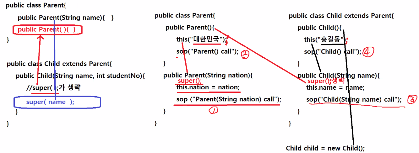// super();가 생략되어 있음 Parent로 넘어감
