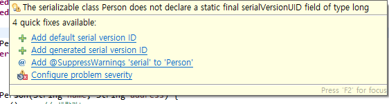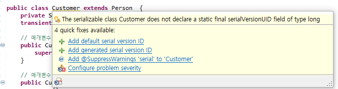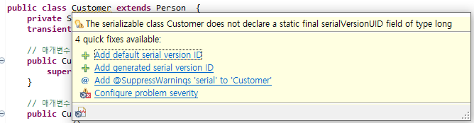 ※ 이클립스 serialVersionUID 자동 생성 기능 있음, 두번째꺼 누르면 된다/