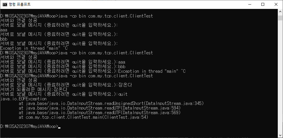 서버가 꺼져서 클라이언트에 EOFException 예외처리 필요