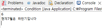 System.out.println("현재" + (month + 1)+ "월은 상반기입니다");
